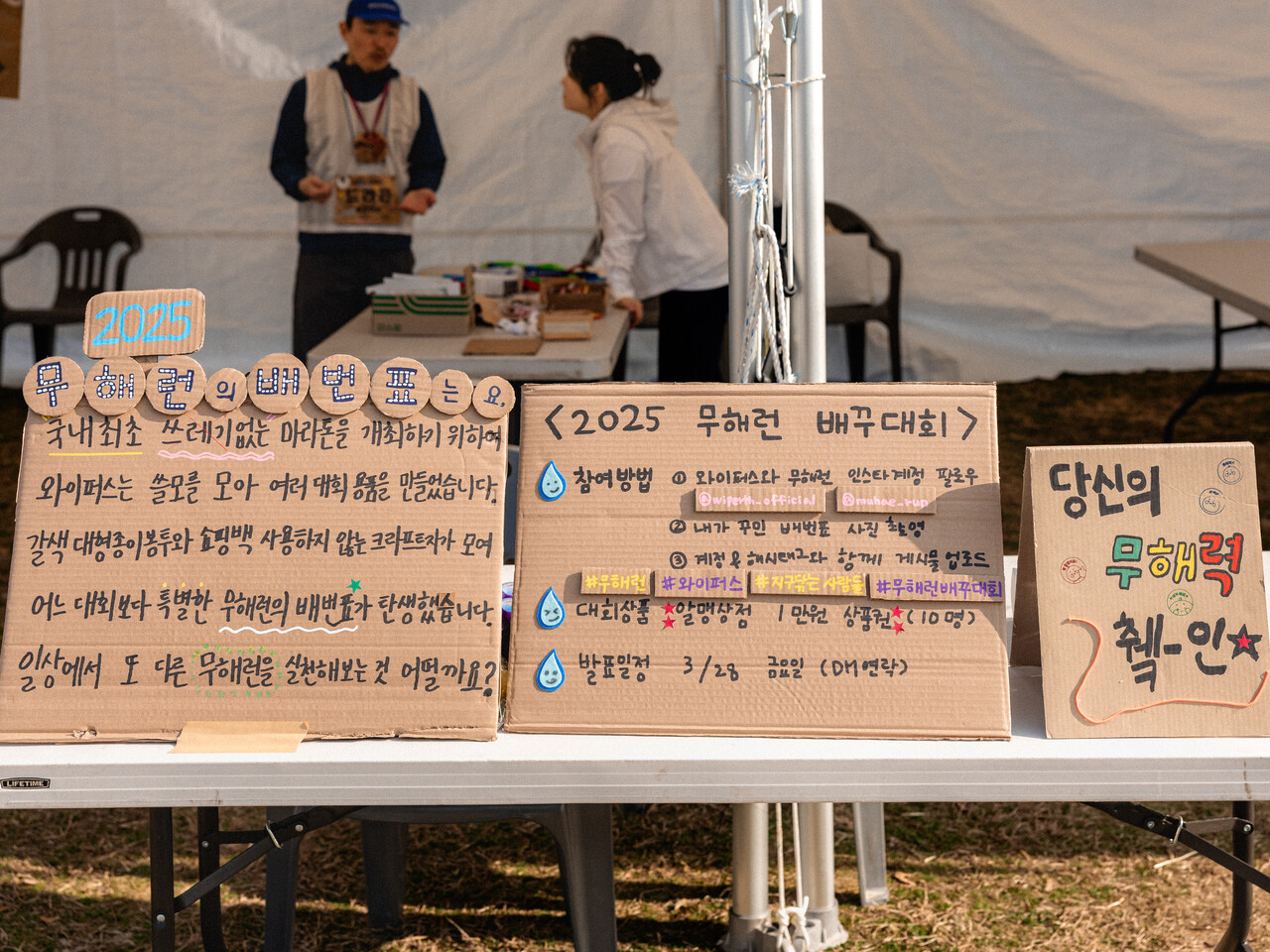 대규모 인파가 몰리는 각종 행사는 많은 폐기물을 발생시키곤 하죠. 콜드플레이의 사례처럼 이러한 문제를 인식하고 탄소 배출을 줄이는 친환경 페스티벌이 주목을 받고 있어요. 2024년, 서울숲재즈페스티벌은 다회용기 배달 시스템을 도입했고 인천펜타포트 록 페스티벌은 행사장 내 다회용기를 사용해 일회용 폐기물 2.8톤을 절감했다고 합니다. 친환경 마라톤 대회도 등장했는데요. 지난 3월 열린 '무해런'은 다회용 컵과 기록칩을 사용하며 그간 마라톤 행사에서 얼마나 많은 일회용품이 사용되고 있었는지를 알리기도 했습니다. 다가오는 페스티벌 시즌, 환경의 달을 맞아 각종 행사 내 친환경적 요소에 주목해 보는 건 어떨까요.