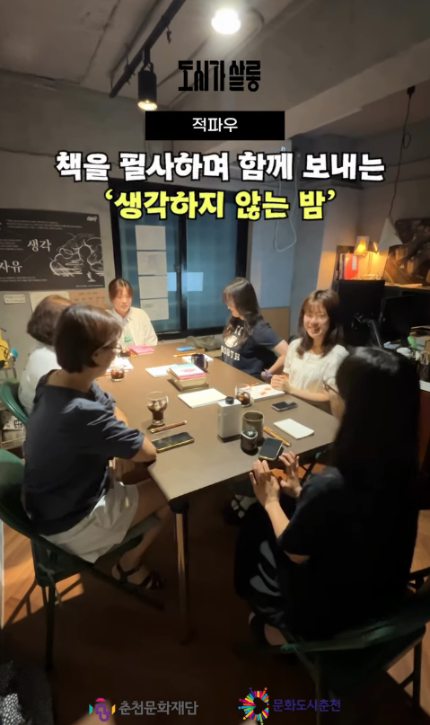 춘천문화재단의 <도시가 살롱> 프로젝트도 빼놓을 수 없죠. 지역 서점, 공방, 카페 등에서 비슷한 취향을 가진 이웃들이 모여 공간 주인장의 기획으로 취미와 일상을 공유하고 있습니다. 올해는 10월까지 진행되며, 춘천을 더 흥미롭게 즐기는 특별한 방법이 될 거예요.