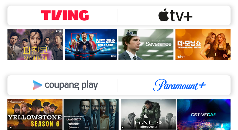 티빙과 쿠팡플레이도 움직이고 있습니다. 두 플랫폼 모두 글로벌 OTT와의 협력을 강화하면서 자체 경쟁력을 높이고 있죠. 티빙은 지난 2024년 11월 애플TV+ 브랜드관을 오픈해, 프리미엄 요금제 가입자를 대상으로 애플TV+ 콘텐츠를 서비스하고 있습니다. 쿠팡플레이 또한 파라마운트+와 손잡았는데요. 옐로우스톤, 헤일로 등 인기 드라마/시리즈와 최신 영화를 서비스한다고 해요.