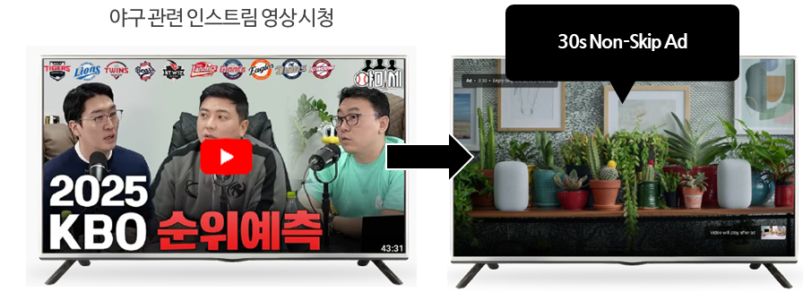 - 더 큰 TV 화면에서, 더 오랫동안 광고를 시청하는 야구 관심 유저 공략