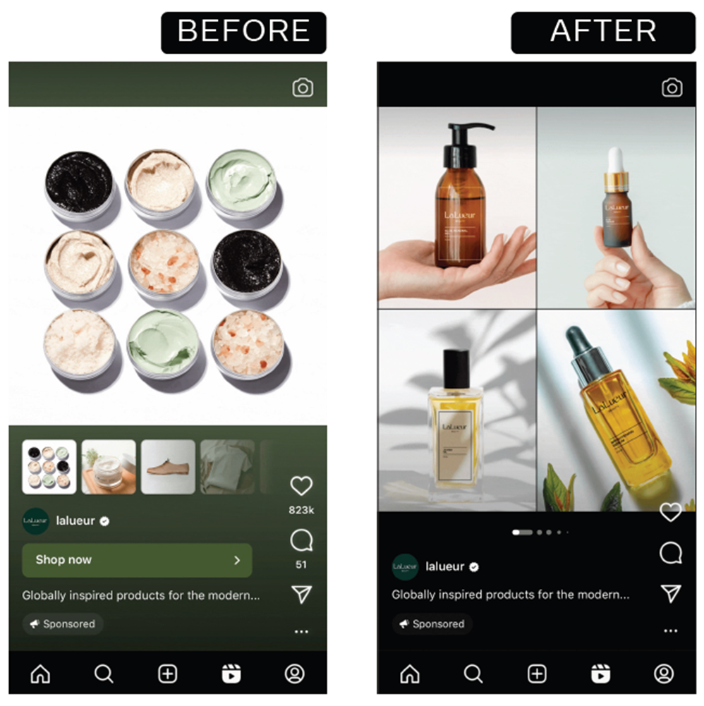 7. 메타, 인스타그램 릴스 지면에서 '슬라이드형 A+CA' 그리드 형태로 노출 방식 변경