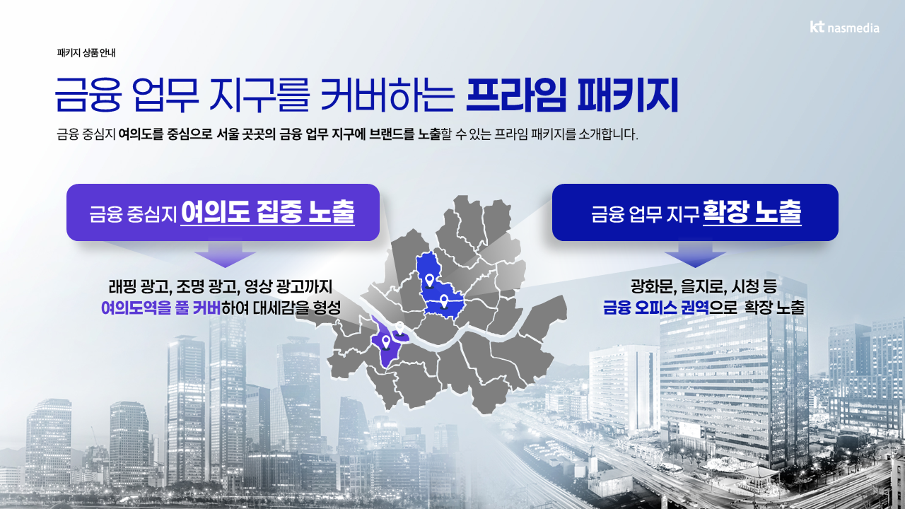 금융 중심지 여의도에서 브랜드를 가장 효과적으로 알릴 수 있는 프라임 패키지를 소개합니다! 지하철 래핑·조명·PSD까지 이동 동선 곳곳에서 자연스럽게 노출되어 금융 업종에 딱 맞는 타겟 접근이 가능합니다. 기간 한정 혜택 적용으로, 자산운용/보험/카드 등 금융 업종에 추천합니다.