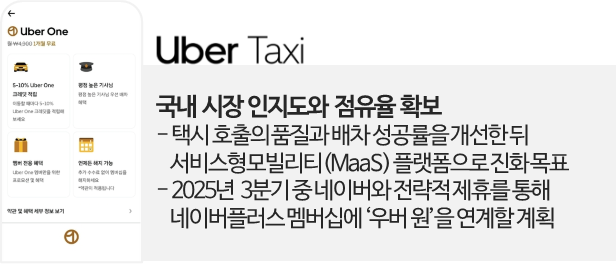 특히 2025년 3분기, 네이버와의 전략적 제휴를 발표하기도 했는데요. 네이버플러스 멤버십 이용자들에게 우버 원 서비스를 제공하는 형태로 제휴를 시작해, 구독 기반의 충성 고객을 확보하려는 전략을 가시화했습니다.