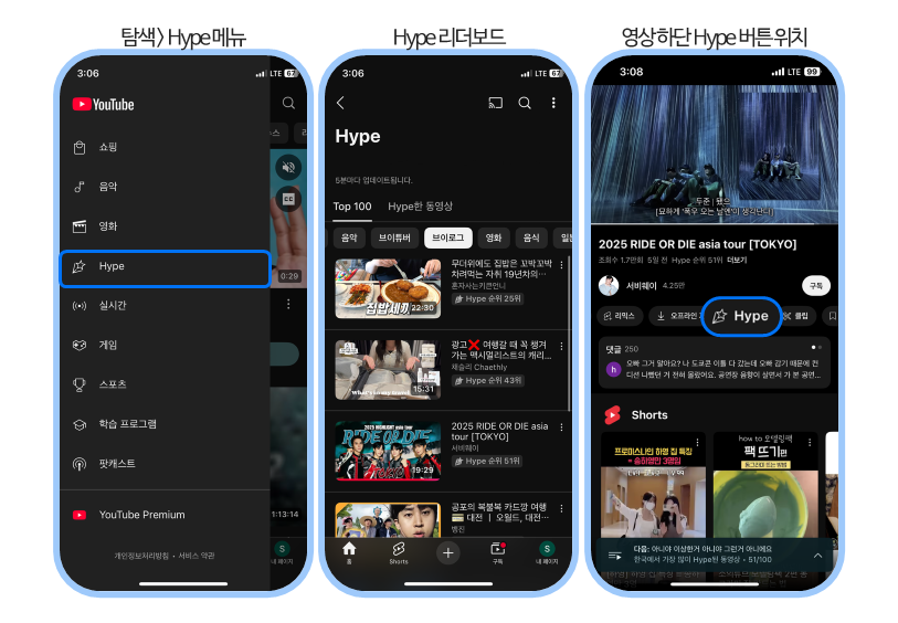 - 유튜브가 2025년 8월, 하이프(hype) 기능을 한국 포함 전세계 39개국으로 확대 적용