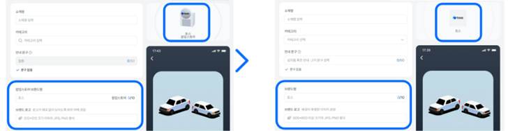 모먼트 배너(변경 후 1:1 이미지)의 팝업스토어 노출 형태도 변경됩니다. 기존 팝업 스토어 로고 이미지에서 브랜드 로고 이미지로 단독 노출됩니다.