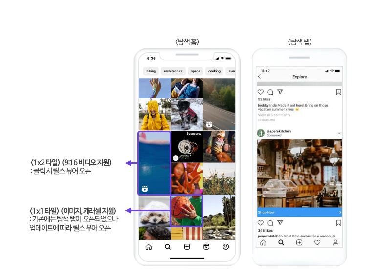 인스타그램이 탐색탭의 1X1 타일을 클릭하면 릴스로 바로 이동하도록 업데이트를 진행했습니다. 기존에는 동일한 1X1 타일 형태로 이어졌지만 앞으로는 탐색 탭 노출을 유지하는 방식은 더 이상 지원하지 않으며 릴스 중심의 탐색 흐름이 강화됩니다. 해당 변경사항은 9월 29일부터 적용되었으며 2026년 상반기 내 업데이트가 모두 완료될 예정입니다.