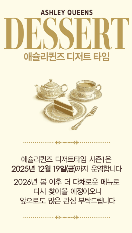 애슐리퀸즈의 디저트타임은 '커피와 디저트를 한 자리에서 즐길 수 있는 공간', '모임을 하기 좋은 공간'이 필요하다는 고객 의견을 반영해 만들어진 프로그램으로, 점심 식사를 마치고 한산한 오후 공백 시간을 새로운 수익 창구로 만들었습니다. 그 결과, 대학가나 오피스 상권에서 '카페의 대안'으로 자리잡으며 찾는 사람이 늘었고, 인기에 힘입어 디저트타임 운영 매장은 넉달새 3배가 증가했다고 해요.