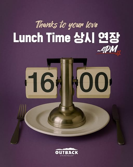 아웃백스테이크하우스는 '비싼 스테이크집'이라는 인식을 완화하기 위해 메뉴 다변화와 런치타임 확장에 집중했습니다. 과거 스테이크 중심의 메뉴 구성이었던 아웃백은, 파스타와 샐러드 선택지를 늘렸고 백화점이나 복합몰 등 접근성이 좋은 곳으로 매장을 옮겨 식사-커피-쇼핑이 이어지는 생활 동선 속 공간으로 자리매김하고 있습니다.
