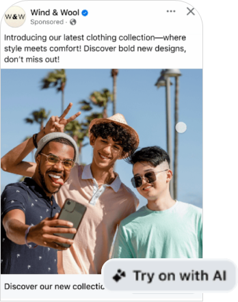 메타는 '버추얼 착용 경험'을 현재 테스트 중인데요. 광고 속의 의류를 이용자가 가상으로 착용해 볼 수 있게 지원하는 기능입니다. 이용자는 콘텐츠를 보다가 의류·뷰티·액세서리 등을 자신의 얼굴이나 신체에 적용한 모습으로 바로 확인할 수 있죠.