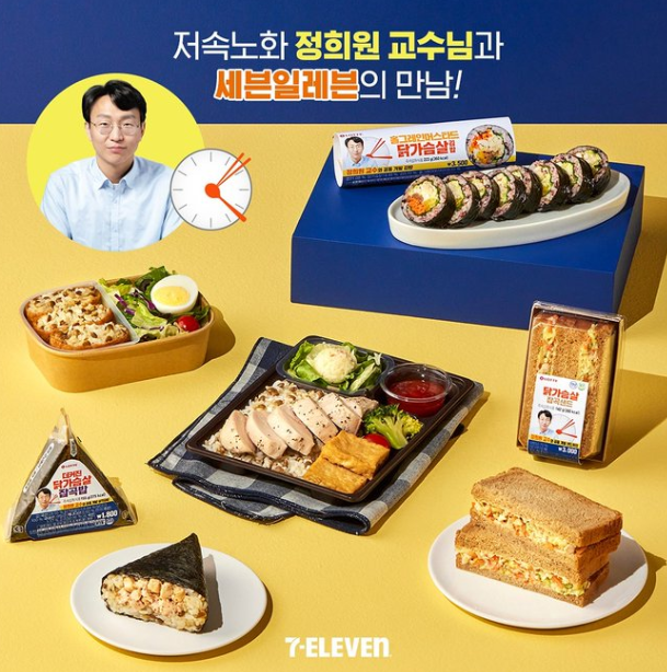 2025년 초에는 정희원 교수가 세븐일레븐과 협업해 '저속노화 간편식 5종'을 선보이며 큰 인기를 끌었는데요. 혈당 스파이크 방지, 대체 탄수화물, 고단백 구성을 강조한 이 상품들은 편의점에서도 프리미엄 건강식을 찾는 소비자가 늘고 있다는 점을 보여주는 대표 사례입니다.