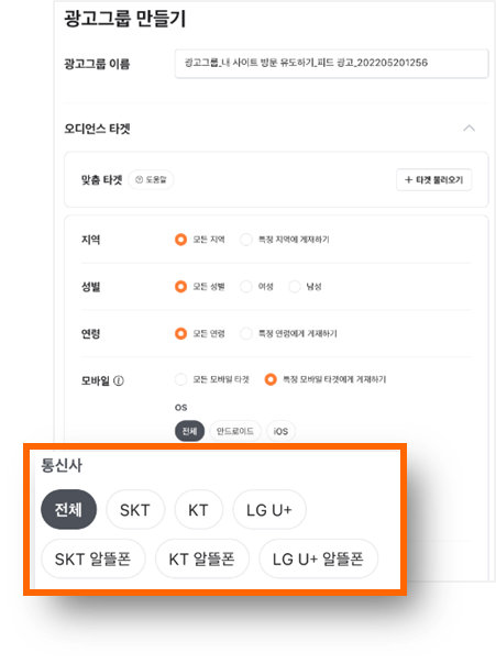 당근이 당근 광고그룹 내 '통신사 타겟팅' 기능을 추가했어요. 이제 광고그룹에서 특정 통신사를 사용하는 유저를 선별해 타겟팅할 수 있고, 선택 옵션도 전체 / SKT / KT / LG U+ / SKT 알뜰폰 / KT 알뜰폰 / LG U+ 알뜰폰 으로 나뉩니다. 동일한 캠페인이라도 통신사와 알뜰폰 여부에 따라 노출 대상을 다르게 가져갈 수 있어요.