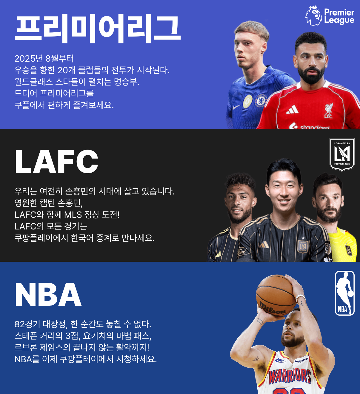 - 연중무휴 스포츠 편성: EPL 및 분데스리가 등 유럽 축구 리그와 미국 농구 NBA, 손흥민 소속 구단 LAFC 중계를 통해 1년 365일 공백 없는 스포츠 루틴을 설계했습니다. 특정 시즌에만 이용자가 몰리는 현상을 방지하고 스포츠 팬들이 매일 접속해야 하는 명분을 제공합니다.
