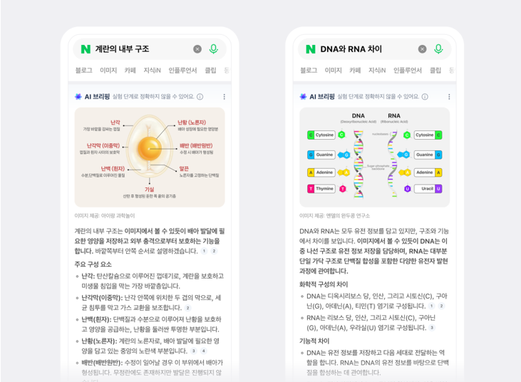 - 네이버의 AI 브리핑은 단순 요약을 넘어 핵심 정보 정리, 후속 질문, 재검색, 출처 확인까지 연결하는 새로운 검색 흐름을 형성