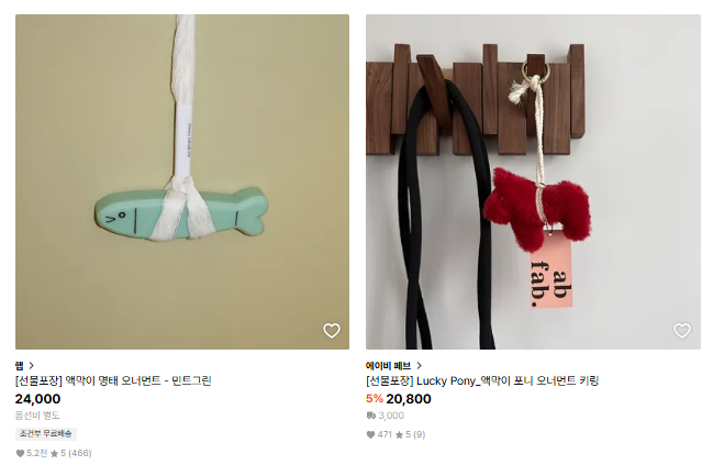 최근에는 무속과 점술에 대한 관심이 콘텐츠 안에서만 머무르지 않고, 실제 소비와 마케팅 영역으로도 번지고 있습니다. 다이소는 지난 설을 맞아 공간에 좋은 기운을 더해주는 '풍수 인테리어 기획전'을 선보였는데요. 좋은 주둥이로 나쁜 기운은 막고, 넓은 몸통으로 재물을 모은다는 의미를 담은 호리병이나, 액운을 막고 재물을 모은다는 의미의 '사주 부적 종이 북마크'를 출시했죠. 다양한 디자인으로 출시되는 액막이(복을 기원하거나 악을 막기 위해 집 안에 매다는 명태) 오너먼트는 작년부터 꾸준히 유행이 되어 왔고요.